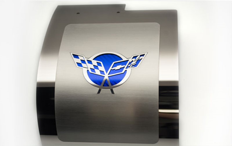 Alternator Cover, Deluxe, Blue Carbon Fiber Vinyl Crossed Flags Inlay