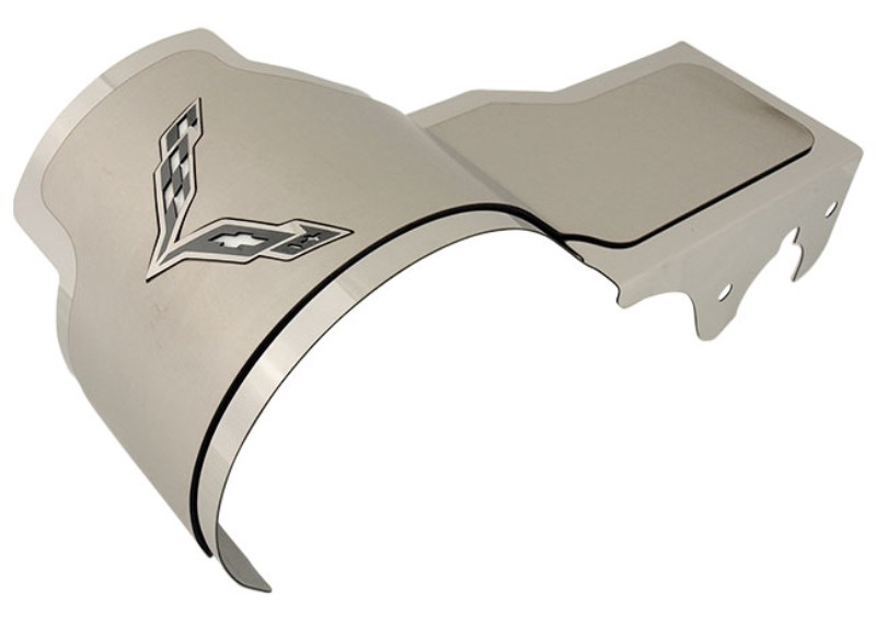Alternator Cover - Polished w/Satin Top Plate Crossed Flags - White Carbon Fiber