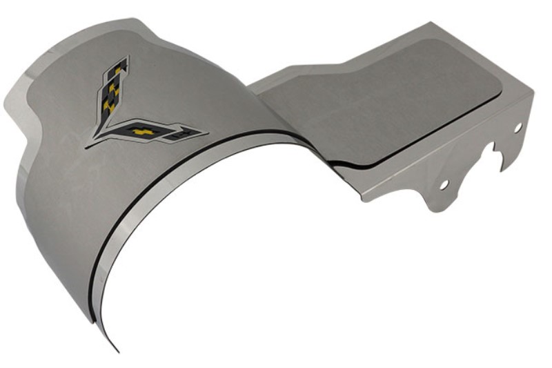 Alternator Cover - Polished w/Satin Top Plate Crossed Flags - Yellow Carbon Fiber