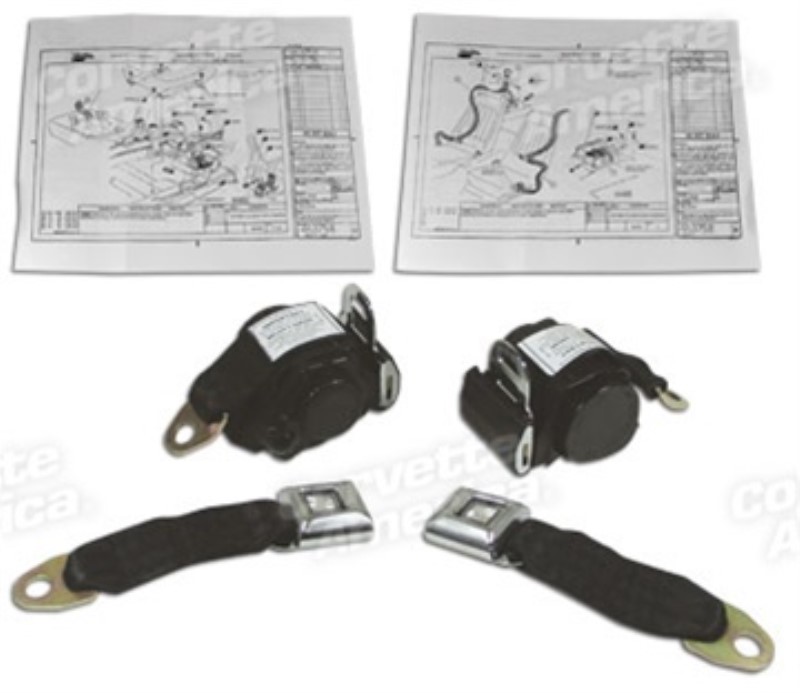 Black Lap & Shoulder Seat Belts - Single Retractor 74-77