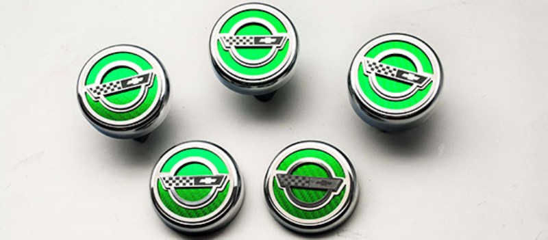 Cap Cover Set, Fluid Caps, Green Carbon Fiber C4 Logo Vinyl Inlay - 5pc (Auto Trans)
