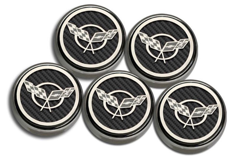 Cap Cover Set, C5 Crossed Flags, Black Carbon Fiber Vinyl Inlay - 5pc