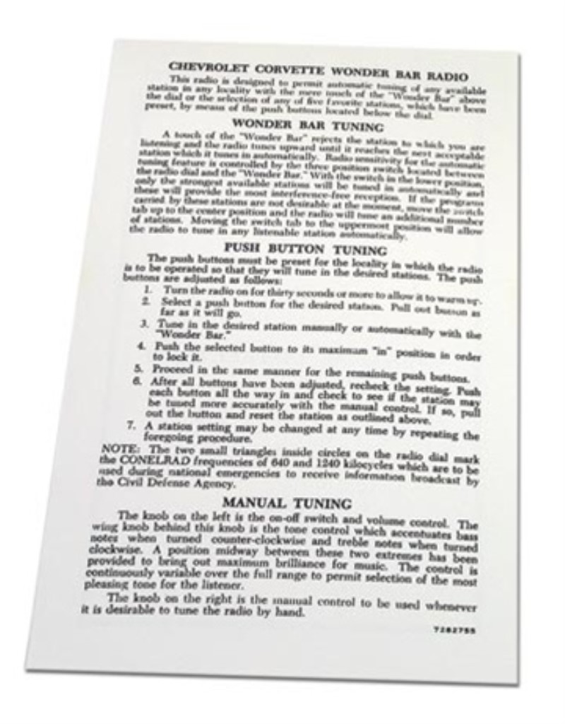 Card. Wonderbar Radio Instructions 58-63