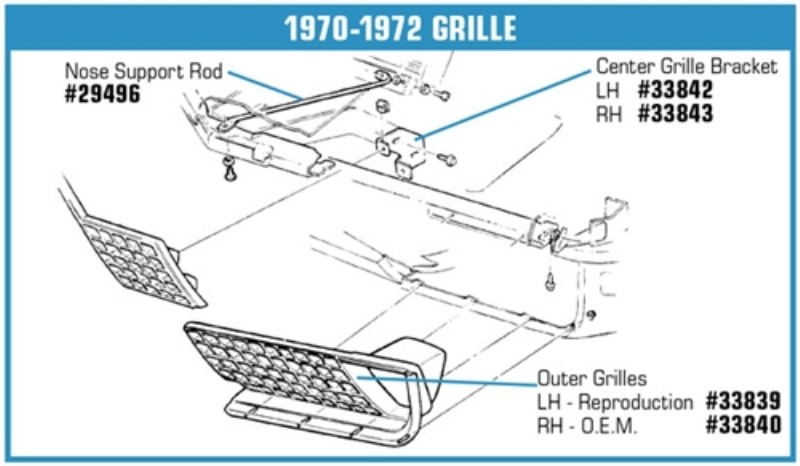 Center Grille Mount Bracket. Inner RH 70-72