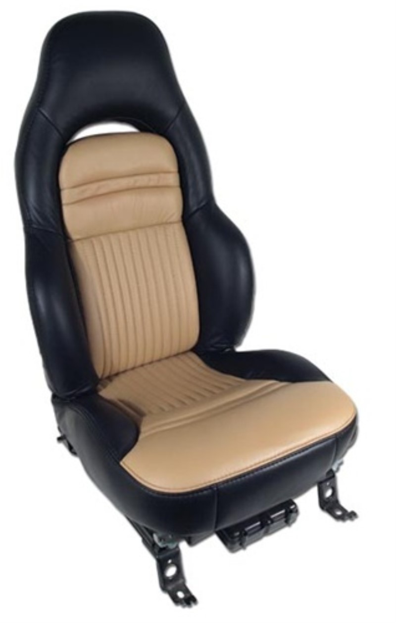 Custom 100% Leather Seat Covers. Sport - Black & Oak 97-04