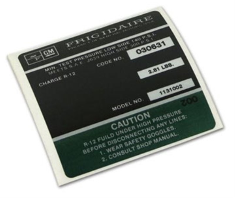 DECAL. AC COMPRESSOR FRIGIDAIRE by Auto Accessories Of America