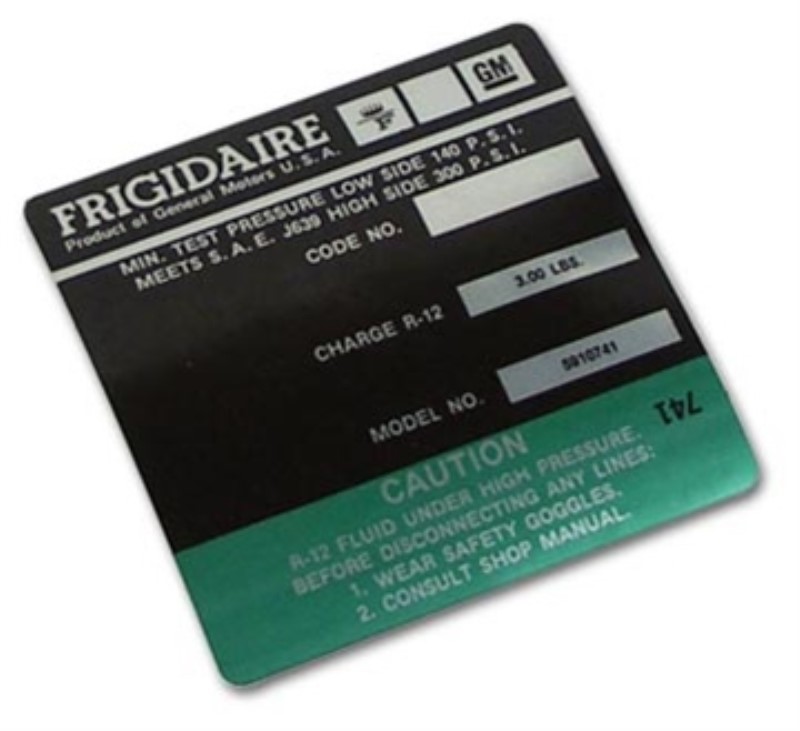 DECAL. AC COMPRESSOR FRIGIDAIRE by Auto Accessories Of America