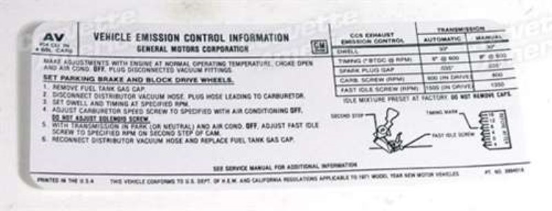 Decal. Emission 454/365 Horsepower 71