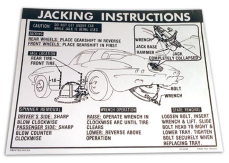Decal. Jacking Instructions W/36 Gallon Tank & Knock-Off Wheels 63-66