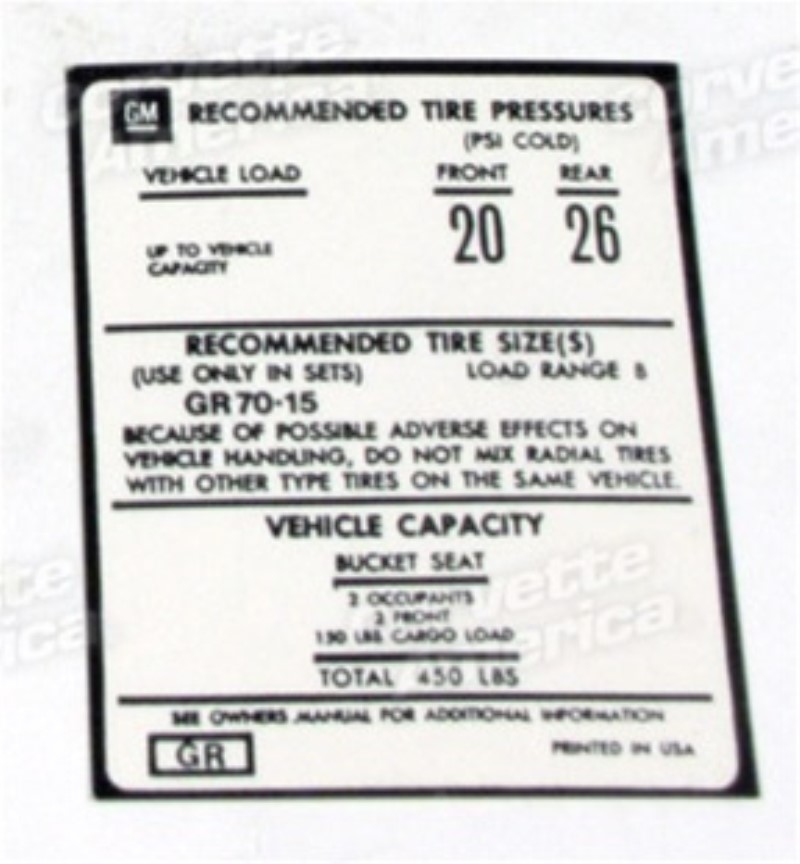 DECAL. TIRE PRESSURE-DOOR by Auto Accessories Of America