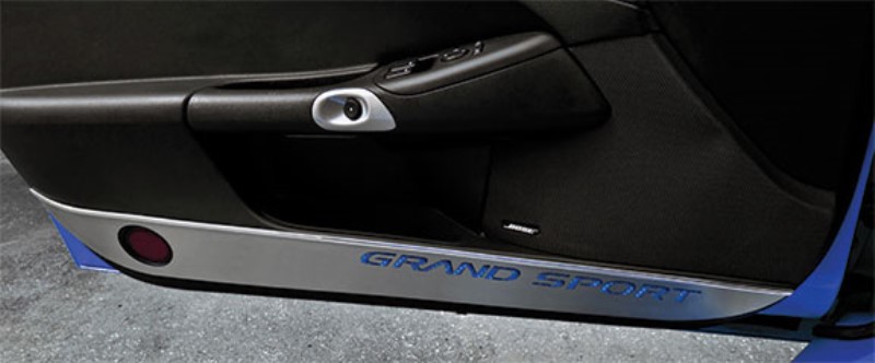 Door Guards, Satin Finish w/ Blue Carbon Fiber Vinyl GRAND SPORT Inlay - 2pc
