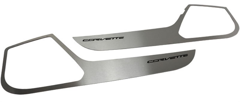 Door Guards - Stainless Steel, Satin Corvette Inlay - 2pc - Black Carbon Fiber