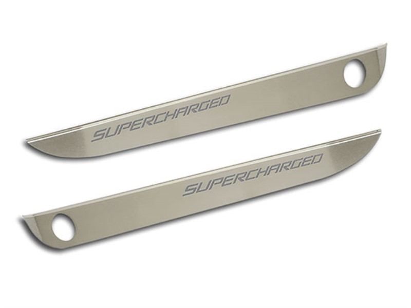 Door Guards, Satin Finish w/ Satin Black Vinyl SUPERCHARGED Inlay - 2pc