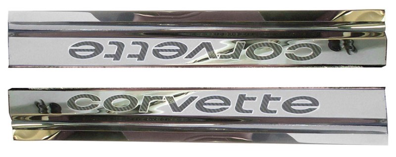 Doorsills , Polished Stainless Steel w/ Black Carbon Fiber Vinyl CORVETTE Inlay - 2pc
