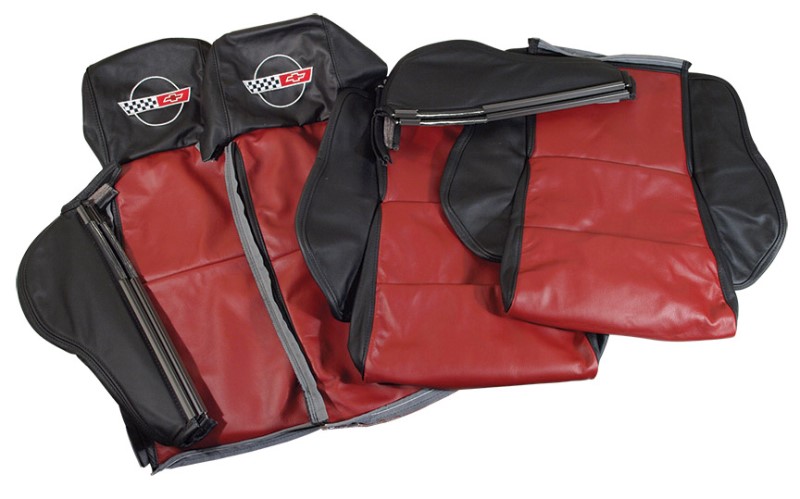 Embroidered Custom 100% Leather Seat Cvrs Sport - Blk & Dk Red 84-88