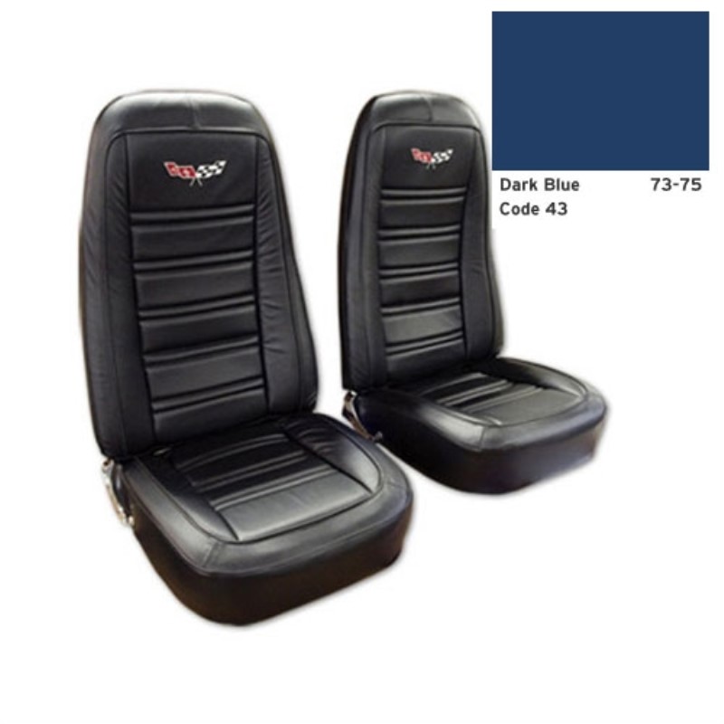 Embroidered Leather Seat Covers. Dark Blue Lthr/Vnyl Original 73-74