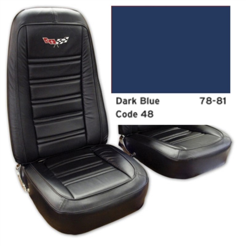 Embroidered Leather Seat Covers. Dark Blue Lthr/Vnyl Original 78