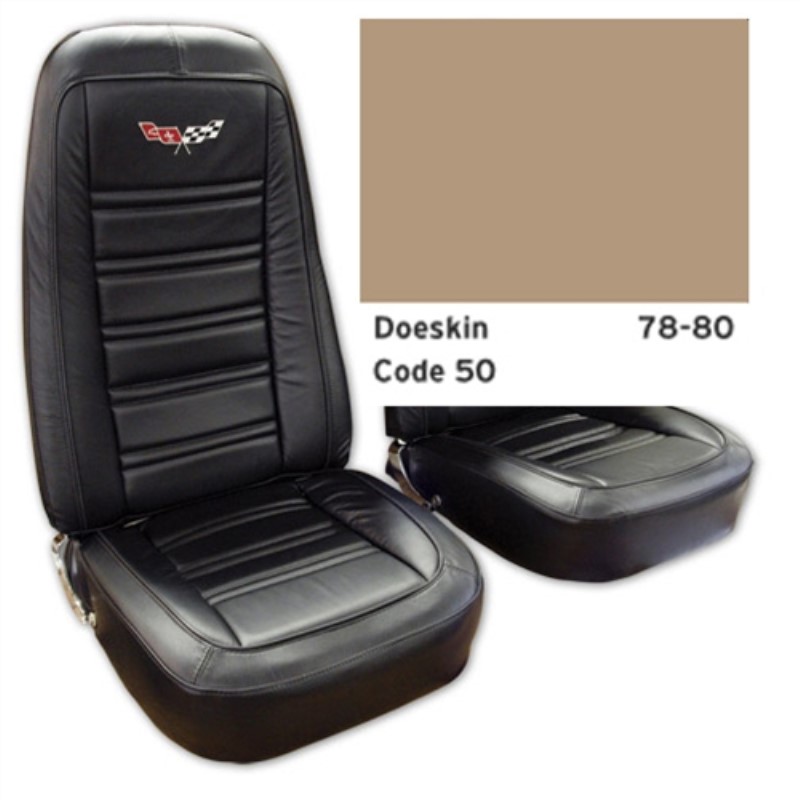 Embroidered Leather Seat Covers. Doeskin Leather/Vinyl Original 78
