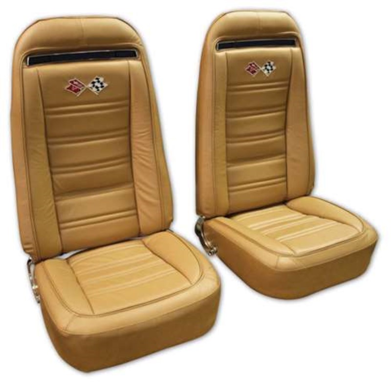 Embroidered Leather Seat Covers. Med Saddle Lthr/Vnyl Original 73-74
