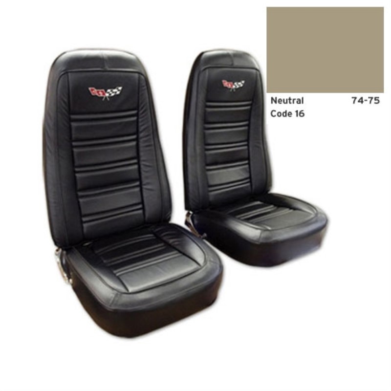 Embroidered Leather Seat Covers. Neutral Lthr/Vnyl Original 75