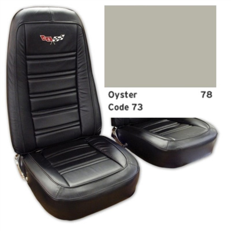 Embroidered Leather Seat Covers. Oyster Leather/Vinyl Original 78