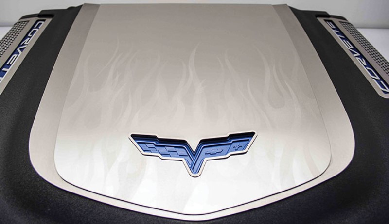 Engine Shroud Cover, w/ Flames & C6 Emblem - 2pc Fits ZR1 Only