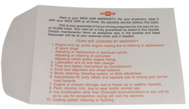 ENVELOPE. WARRANTY BOOK by Auto Accessories Of America
