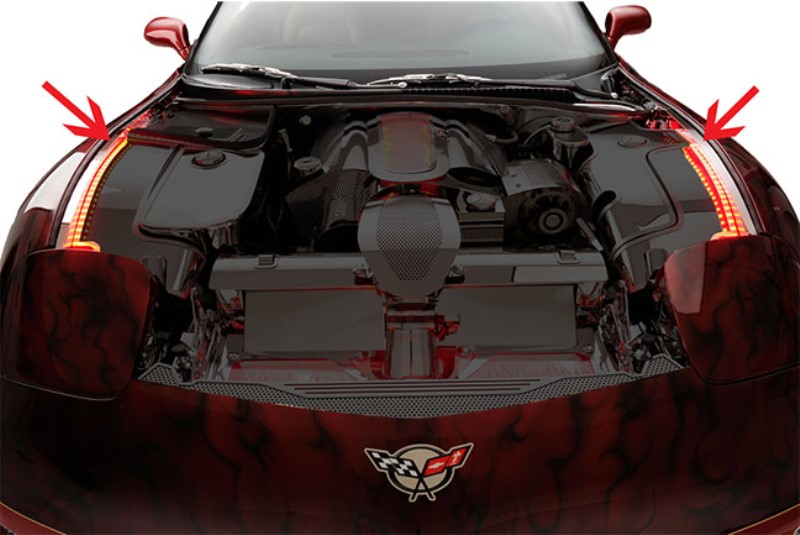 Inner Fender Liners, Polished w/ Illuminated Top Caps, Red LED - 4pc