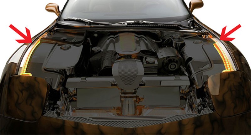 Inner Fender Liners, Polished w/ Illuminated Top Caps, Yellow LED - 4pc
