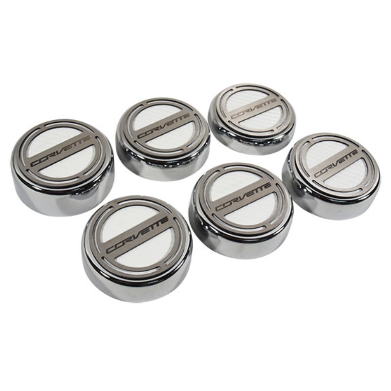 Fluid Cap Cover Set - 6pc Corvette Font - White Carbon Fiber