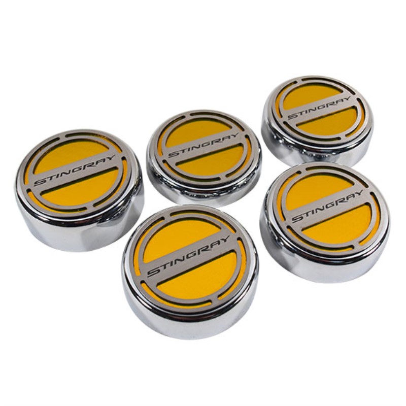 Fluid Cap Cover Set - 5pc Stingray Font - Yellow Carbon Fiber