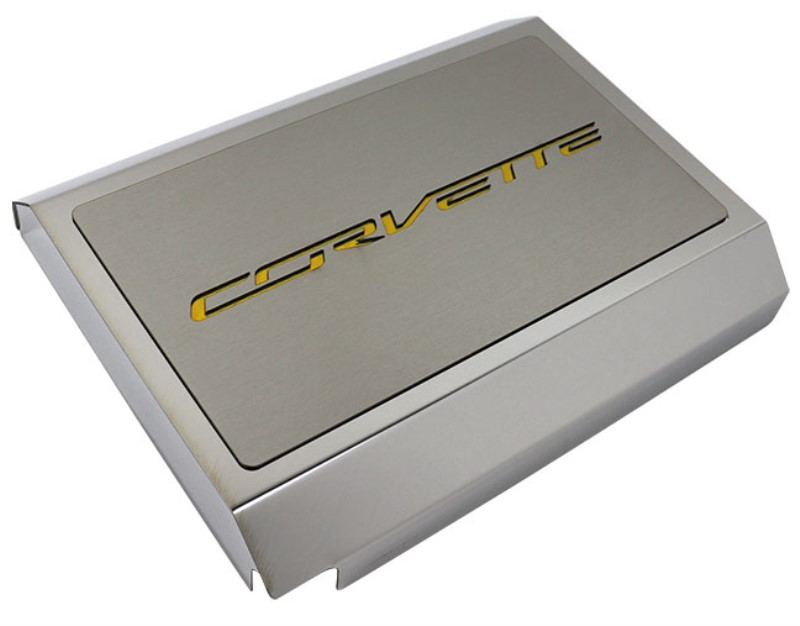 Fuse Box Cover - Corvette Font - Yellow Carbon Fiber