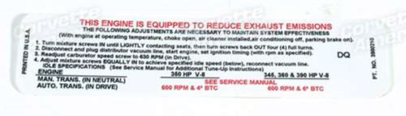 LABEL. EMISSION 454/390 HP by Auto Accessories Of America