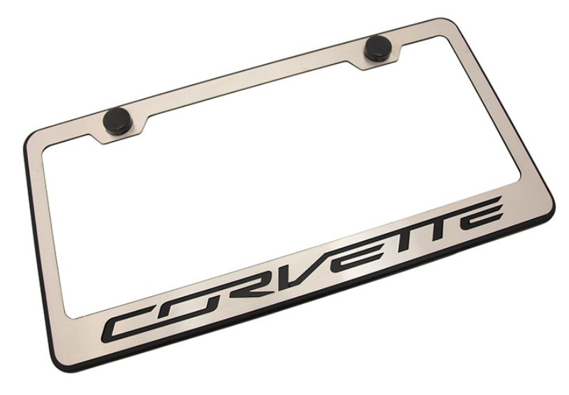 Rear Tag Frame - Powder Coat Black With Stainless Steel -Corvette- Lettering - Solid Black