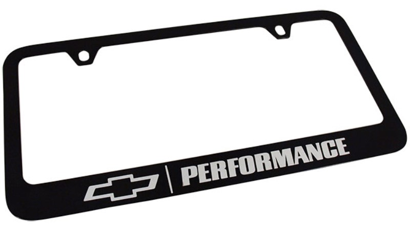 License Plate Frame. Black W/Perform Bowtie Logo - Wide Btm Frame