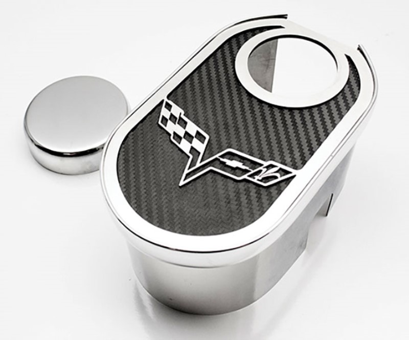 Master Cylinder Cover w/ Cover Cap, Satin Black Vinyl Crossed Flags Inlay