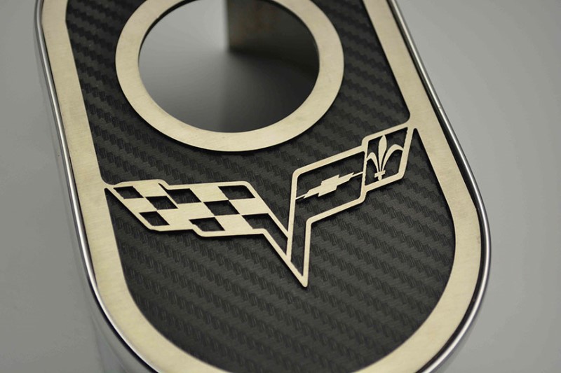 Master Cylinder Cover w/ Cover Cap, Black Carbon Fiber Vinyl Crossed Flags Inlay