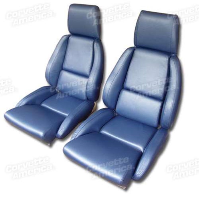 Mounted Leather Seat Covers. Blue Standard No-Perforations 86-88