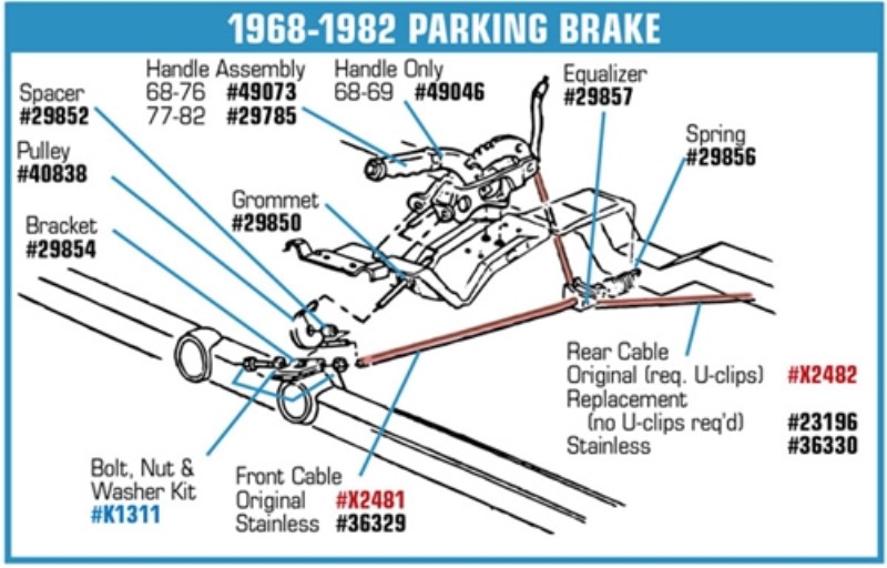 Park Brake Cable Pulley Bolt Set. 68-79
