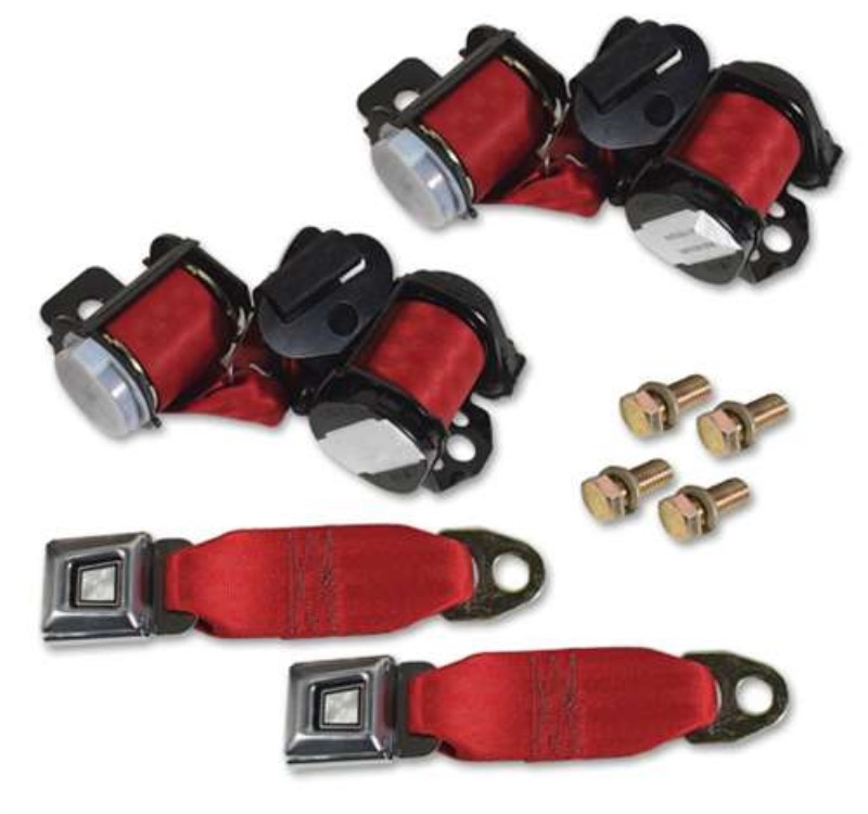 Red Lap & Shoulder Conv. Seat Belts - Dual Retractor 74-75