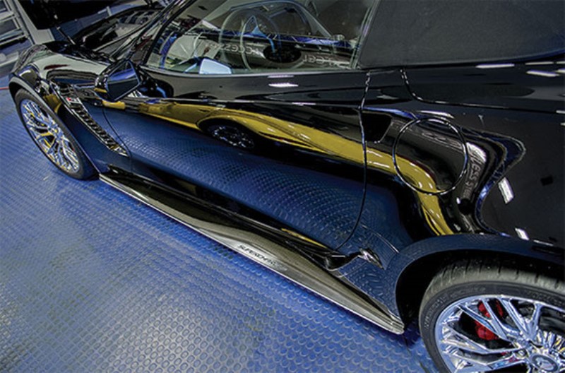 Side Skirt Extensions - Stainless Satin w/Polished Supercharged Inlaid Lettering - Fits Z06 Models Only