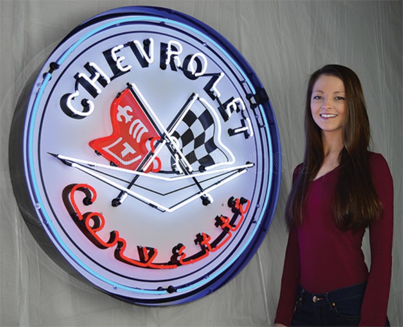 Corvette Flags 36 Inch Neon Sign In Metal Can by Auto Accessories Of America