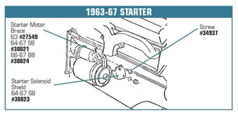 Starter Motor Brace. 327/350 64-69
