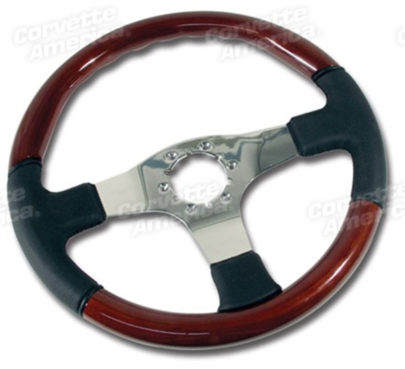 Steering Wheel. Black Leather and Mahogany/Chrome 3 Spoke 68-82