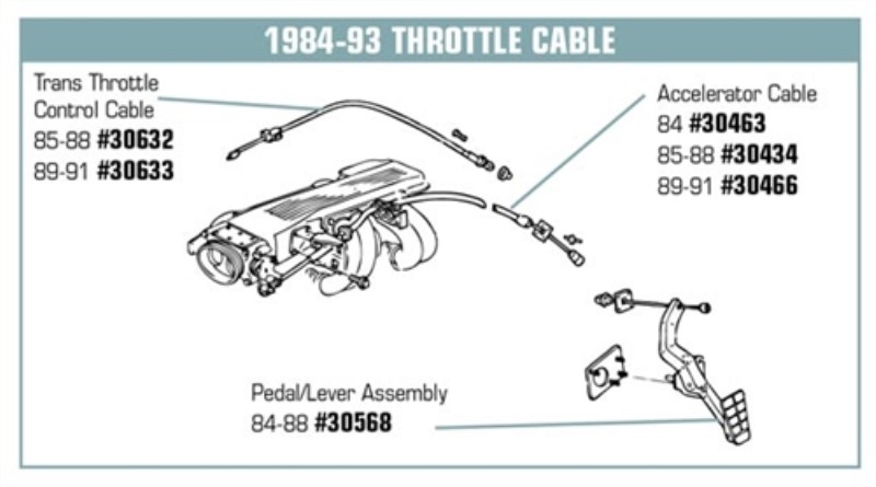 Transmission Throttle Control Cable. Automatic 89-91