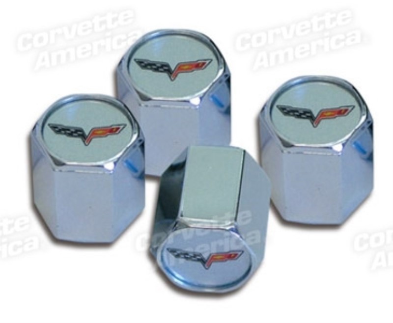 VALVE STEM CAPS. CHROME W/C6 by Auto Accessories Of America
