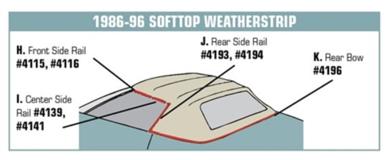 Weatherstrip. Convertible Top Side Rear RH 86-96