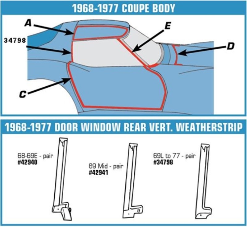 Weatherstrip. Door Window Verticals Coupe - Import 69-77