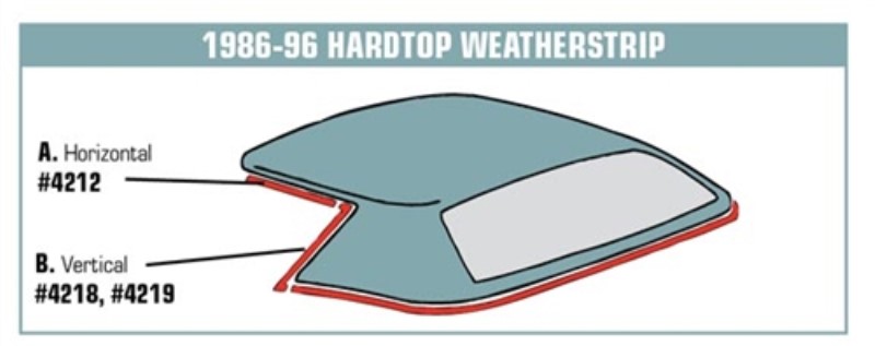 Weatherstrip. Hardtop Vertical RH 86-96