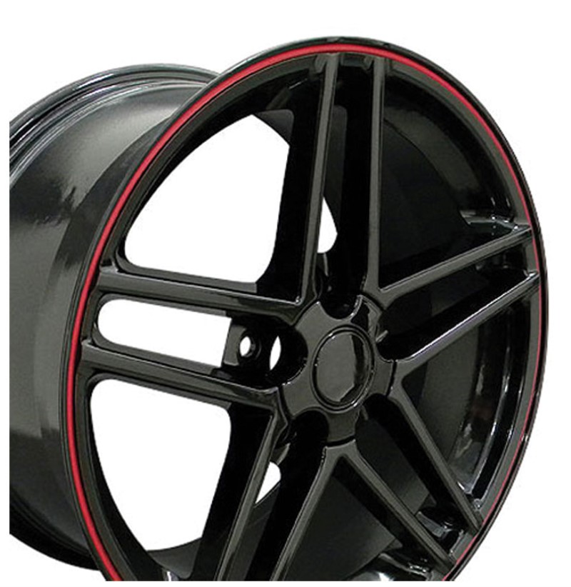 C6 Z06 Split 5 Spoke Wheel Set - Gloss Black W/Red Stripe W/Wide Fronts